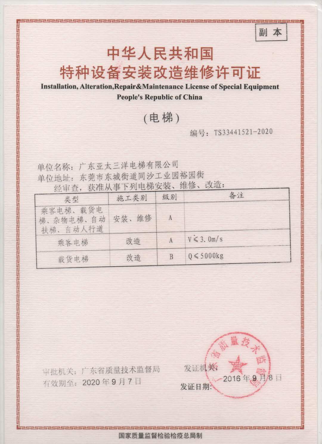 廣東亞太三洋電梯有限公司是從事電梯產(chǎn)品設(shè)計(jì)、制造、安裝及售后服務(wù)的專業(yè)公司,其前身是廣東地區(qū)較早成立的電梯企業(yè)之一,成立于1993年,是一家擁有世界先進(jìn)技術(shù)的電梯企業(yè)。先后獲得了國家質(zhì)量監(jiān)督檢驗(yàn)總局及國家有關(guān)部門頒發(fā)的(AAA)生產(chǎn)許可證和安裝資質(zhì),并通過了行業(yè)質(zhì)量體系認(rèn)證,產(chǎn)品行銷世界30多個(gè)國家和地區(qū)。“好品質(zhì),用心打造”,亞太三洋電梯堅(jiān)持一絲不茍地控制所有生產(chǎn)工藝,秉承質(zhì)量的精益求精和工藝的日臻完善...